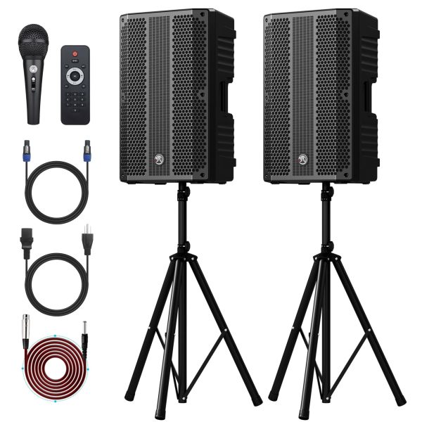This all-in-one PA system has everything, which you can easily enjoy the music. An active speaker, a passive speaker, a wired microphone, a wireless remote control, a 30ft length speakon cable to connect the speakers, a power cable, a microphone cable as well as 2 speaker stands